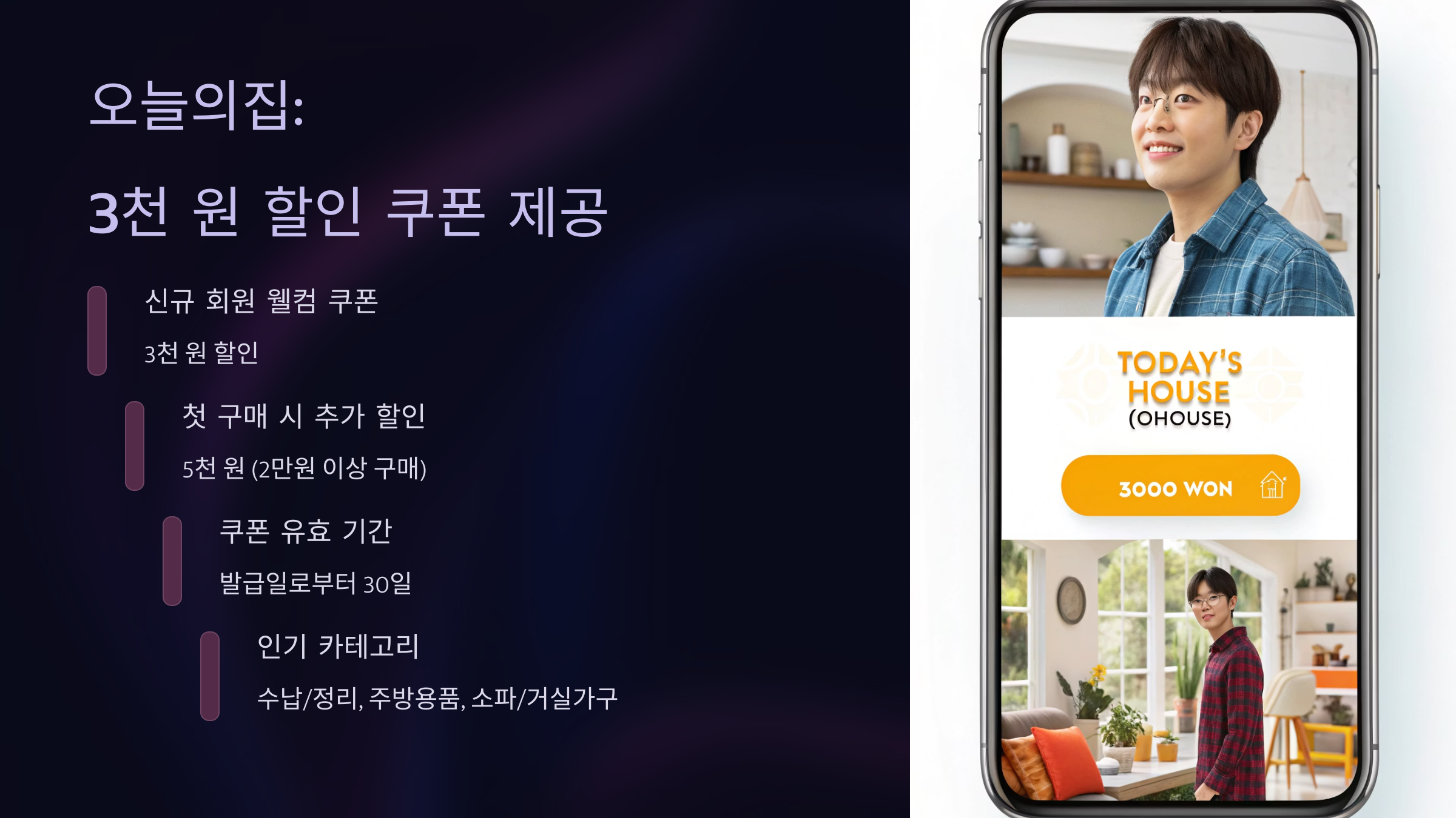 - 오늘의집: 3천 원 할인 쿠폰 제공