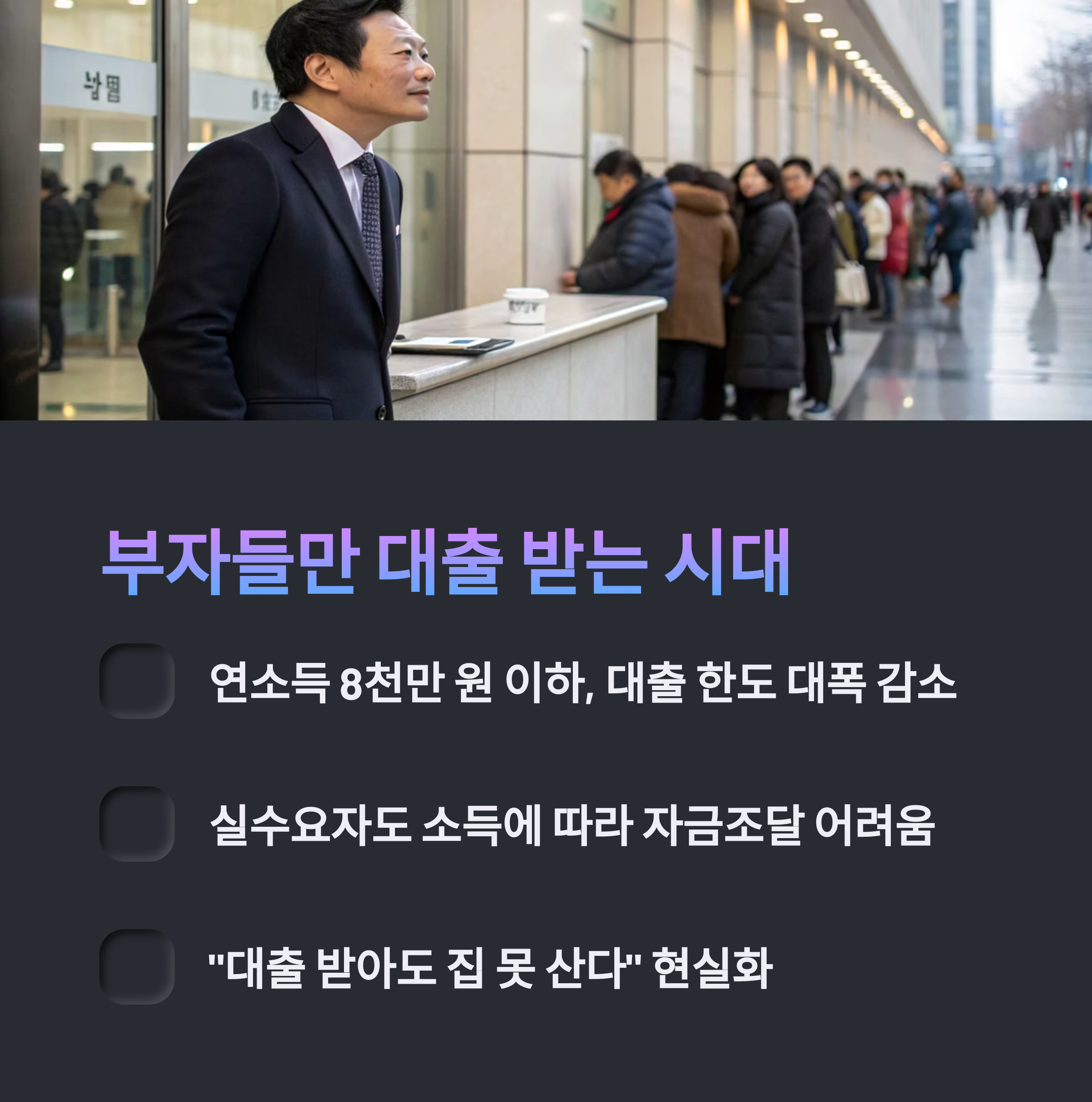 이는 단순히 대출이 줄어드는 수준을 넘어서, 소득 기반 자산 거래만 허용하는 구조로 바뀌는 것입니다.