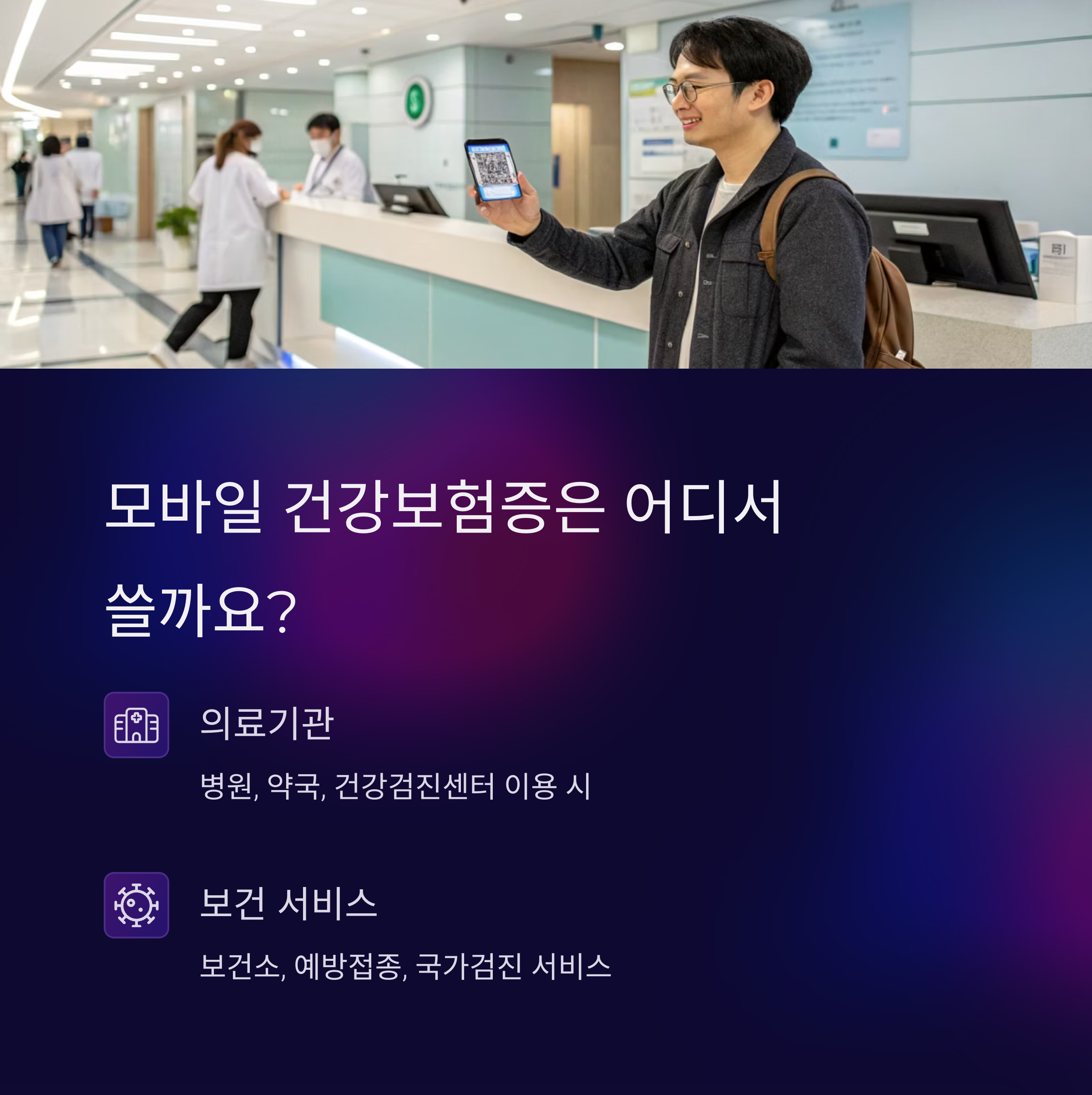 | 모바일 건강보험증 | 국민건강보험공단이 발급하는 디지털 건강보험증. 병원·약국·보건소에서 실물 없이 사용 가능 |