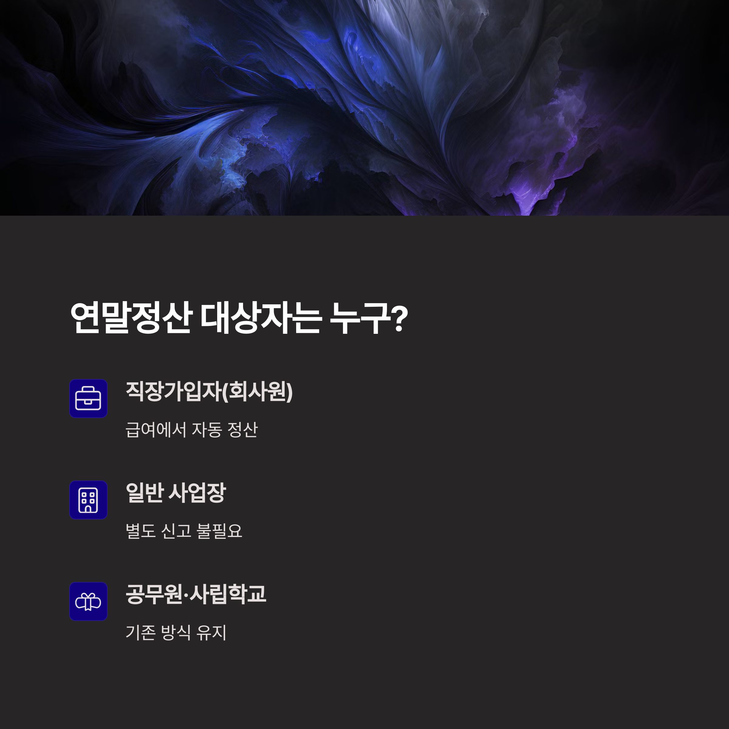 - 정산 대상: 직장가입자 (회사 다니는 분들)