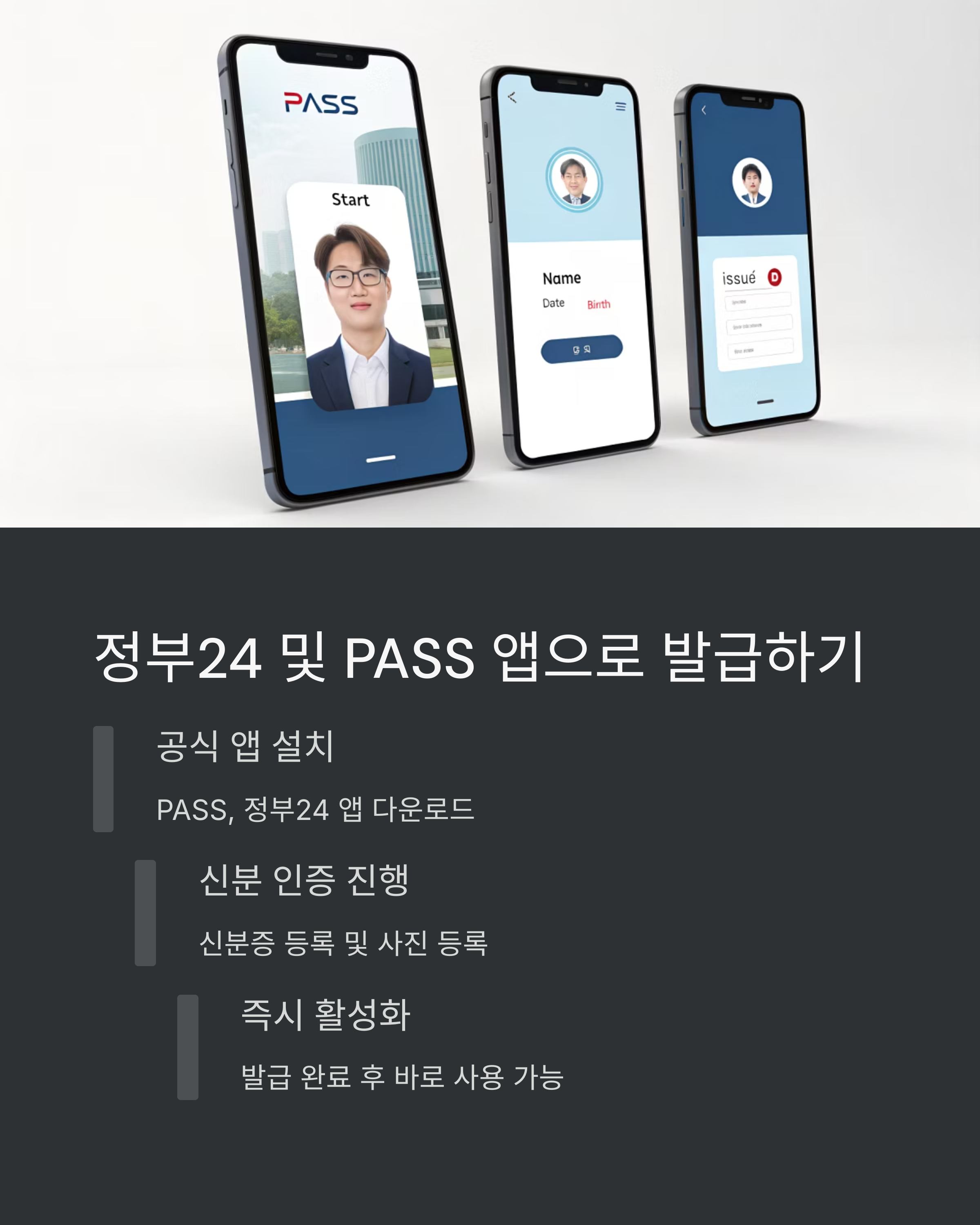 모바일 신분증은 정부24 앱 또는 PASS 앱을 통해 발급할 수 있으며,