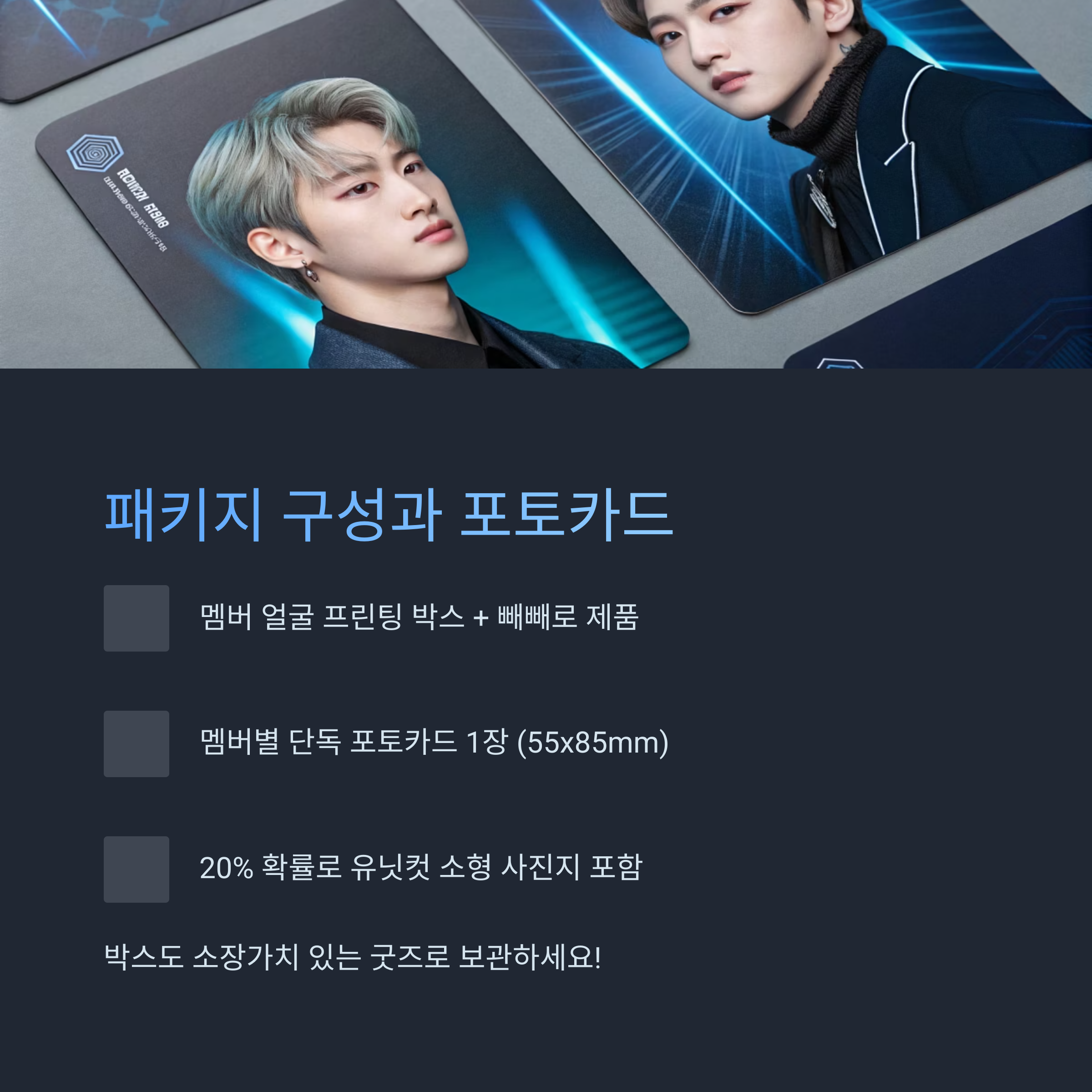 - 종류: 멤버별 포토카드 포함 박스 패키지