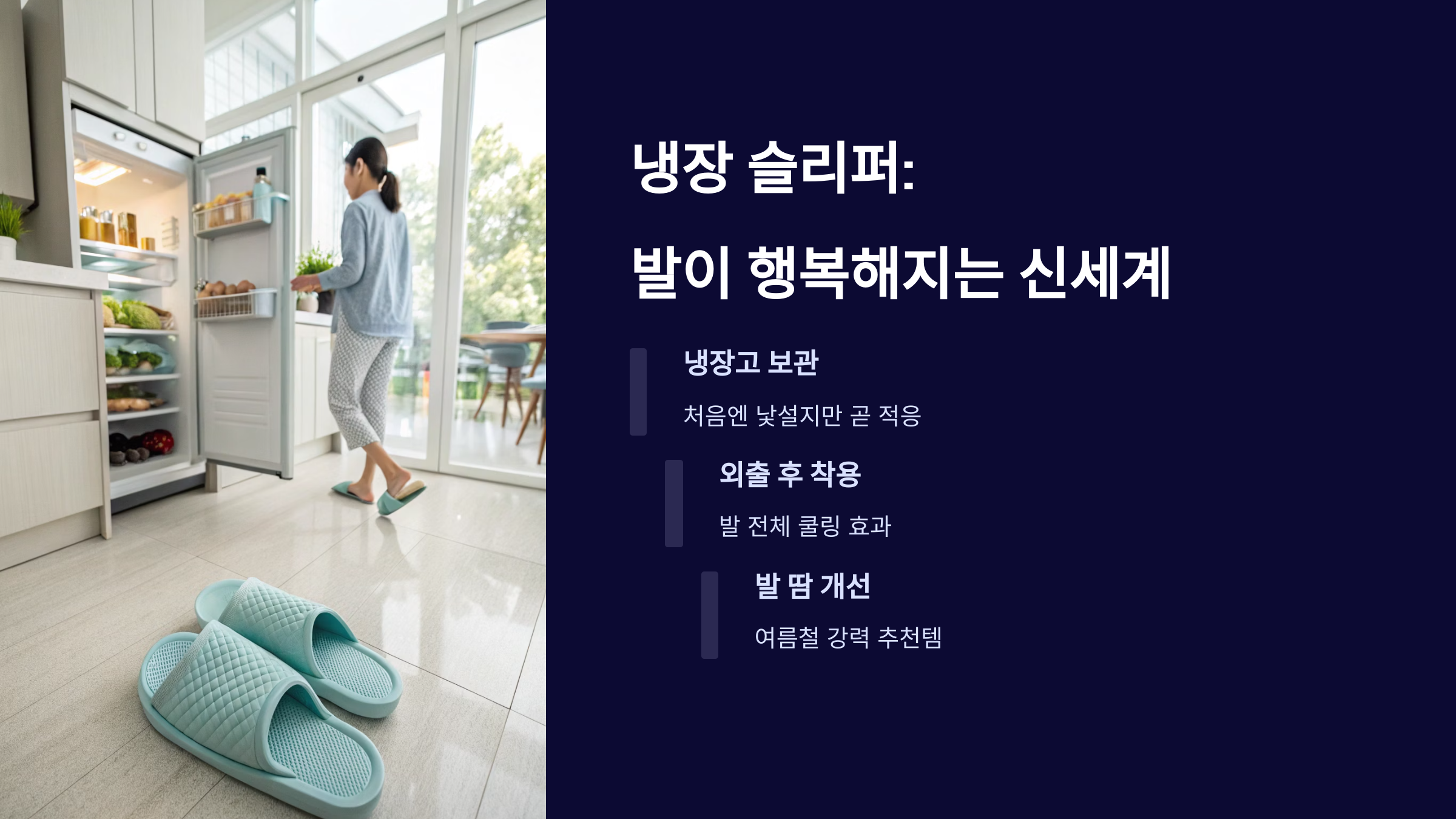 - 냉장 슬리퍼 – 처음은 낯설지만 발이 행복함
