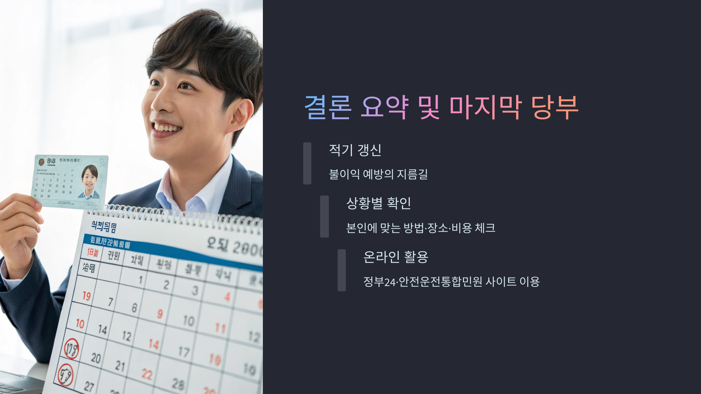 기한을 넘기면 과태료와 함께 면허 취소 위험이 생기므로, 생일 1개월 전 알람 설정을 꼭 추천드립니다.
