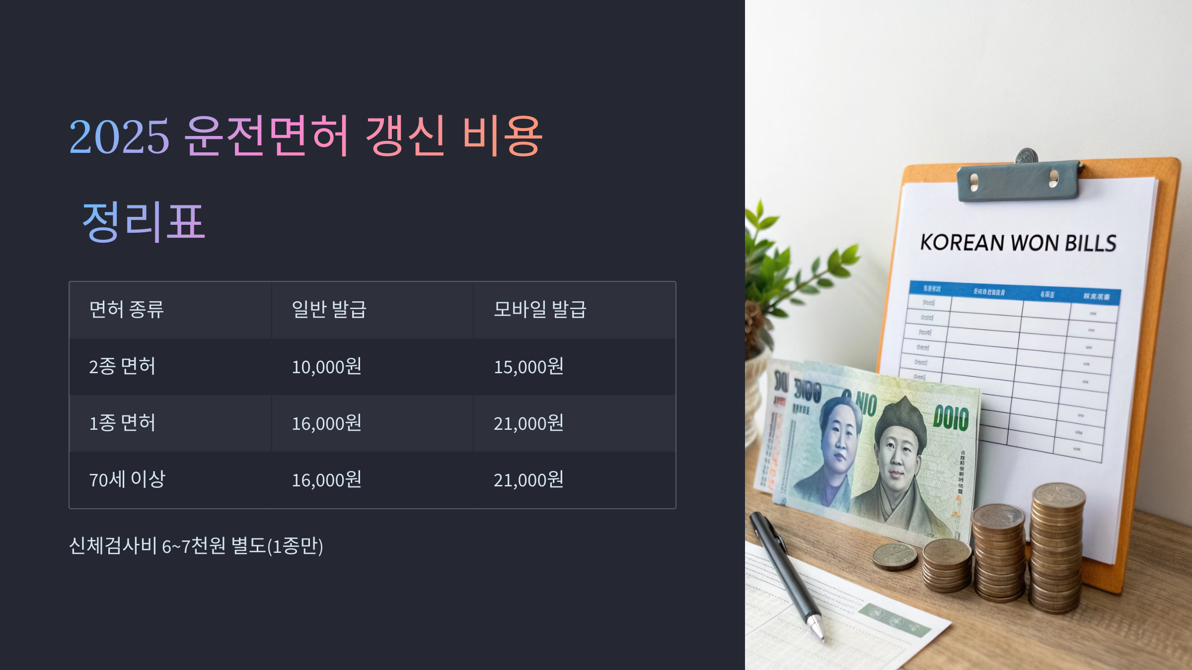- 운전면허 갱신 비용 정리표 (2025년 최신)