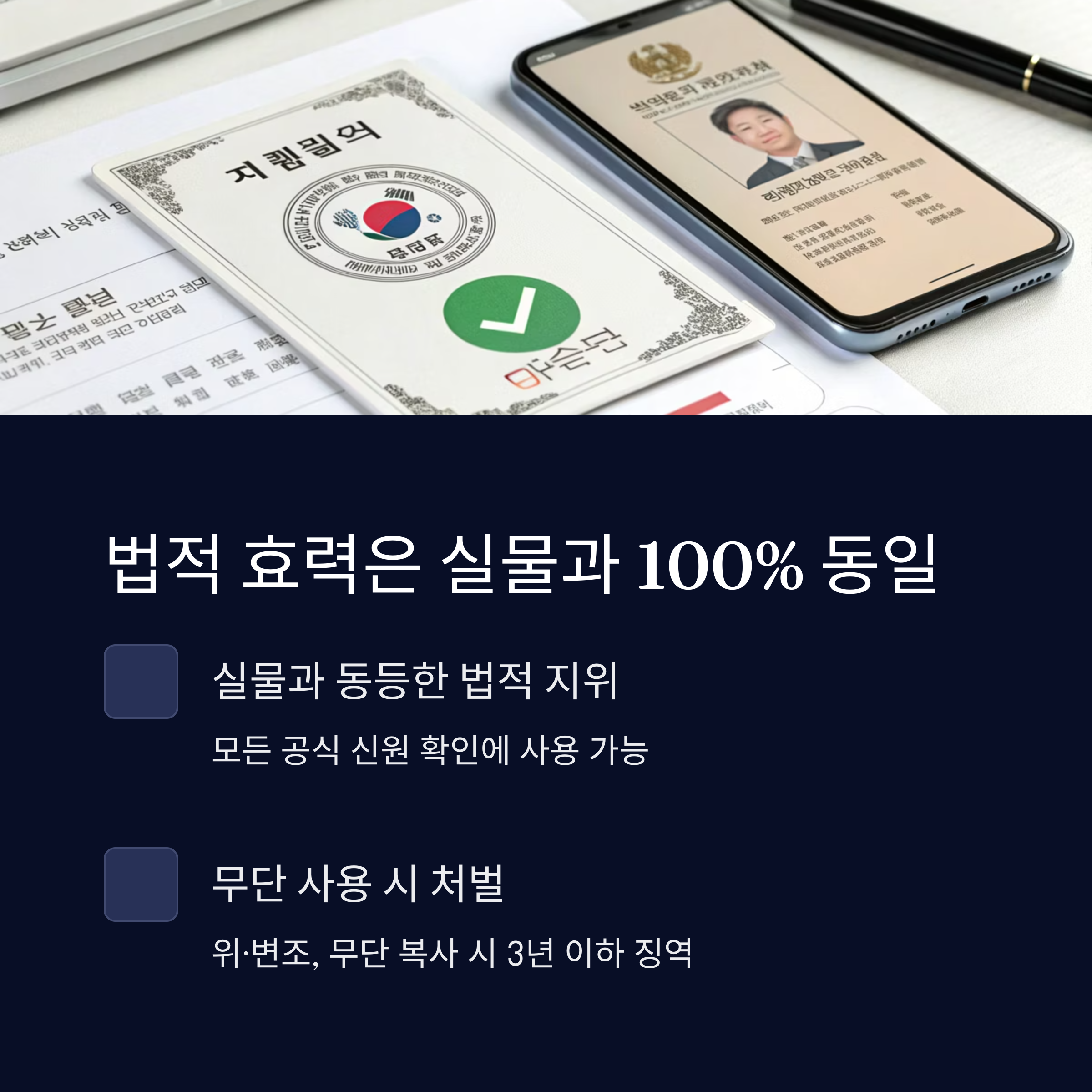 - 실제 신분증의 법적 효력 100% 동일