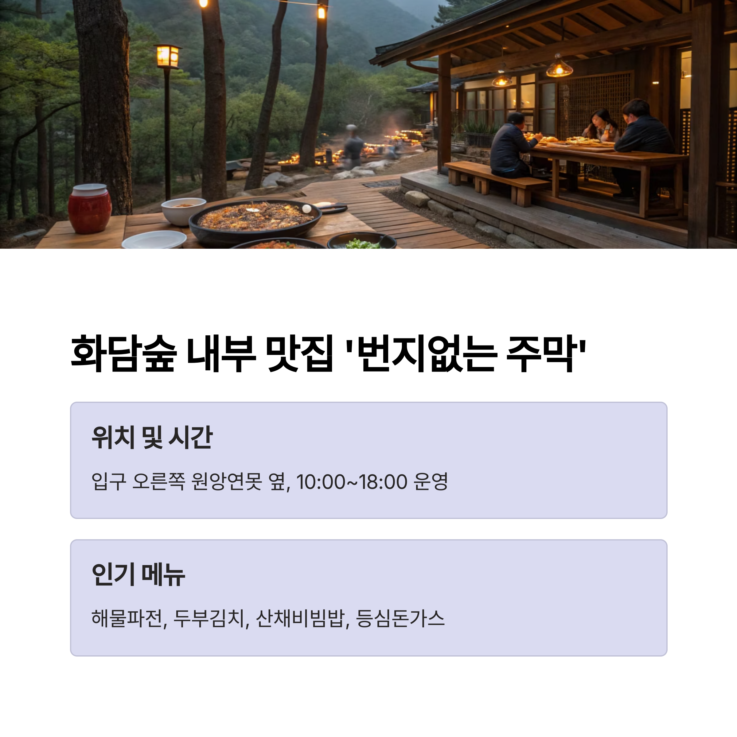 제가 실제로 가봤거나, 화담숲 방문자들 사이에서 평이 좋은 근처 맛집 3곳을 소개할게요.