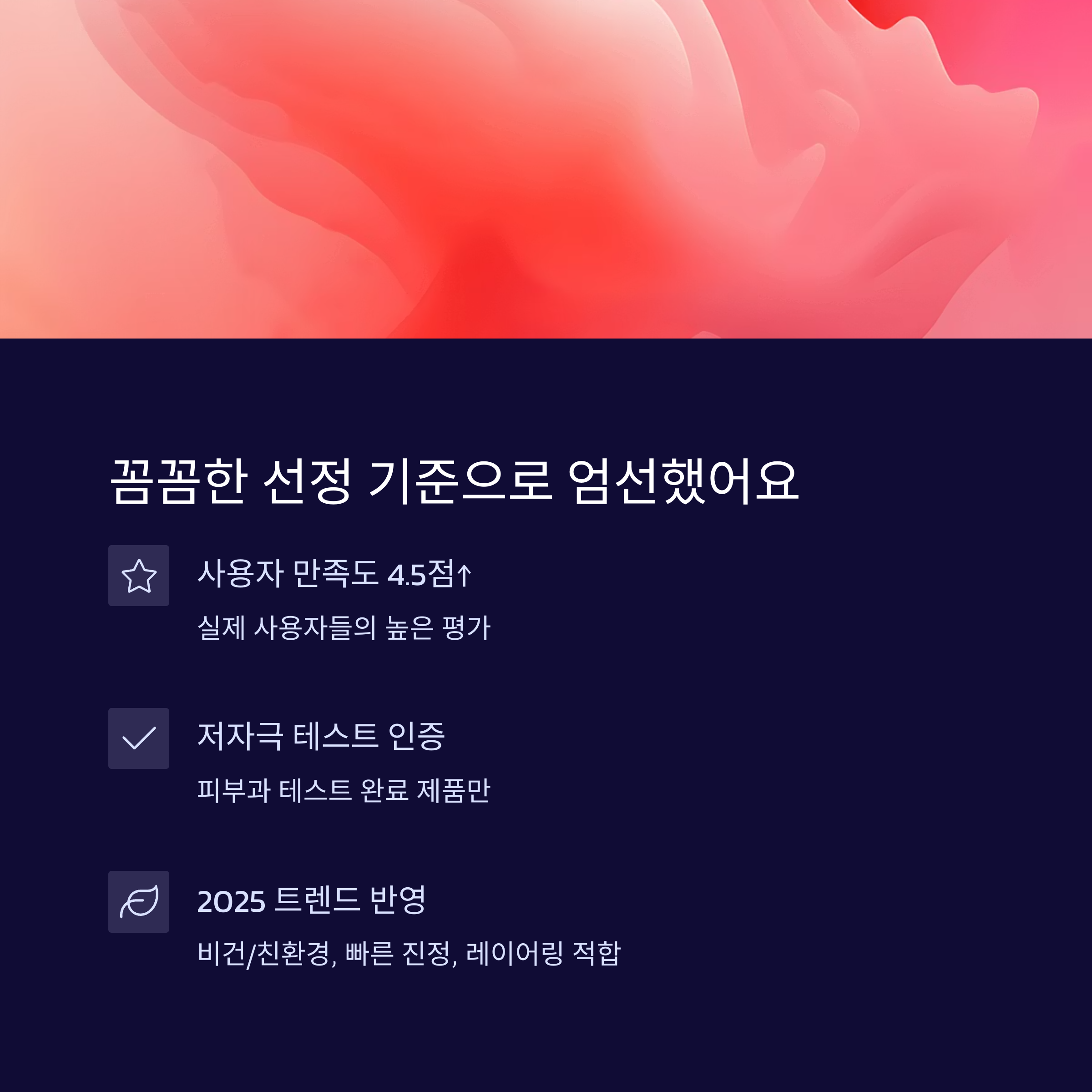 2025년 뷰티 트렌드는 '무자극의 정직한 성분'으로 이동 중입니다.