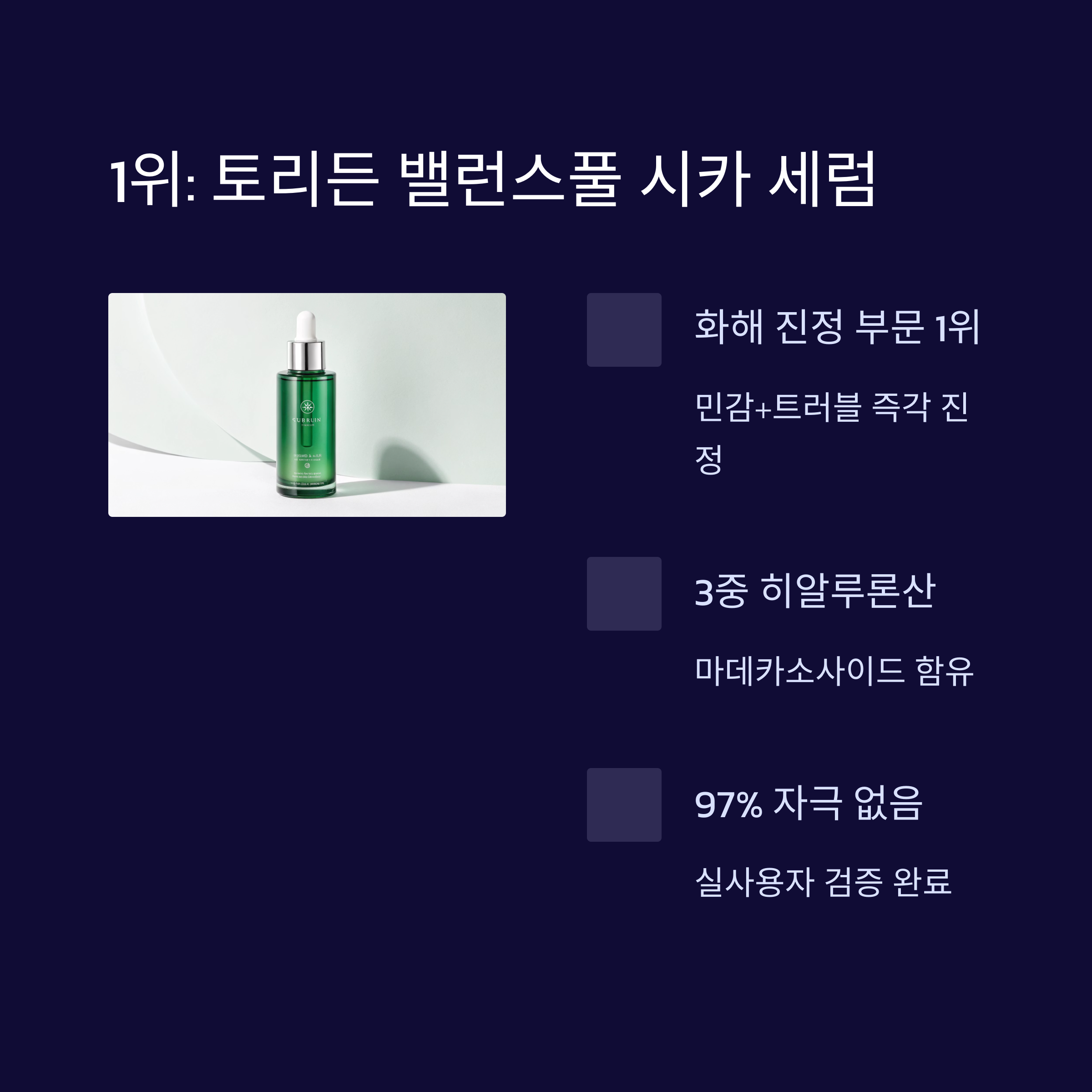 진정 + 보습 + 피부장벽 강화 효과를 주는 제품들만 엄선했습니다.
