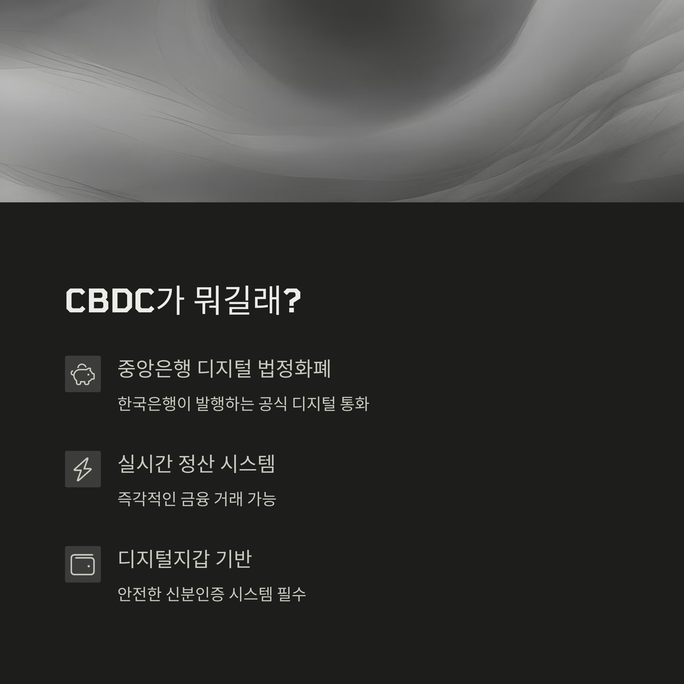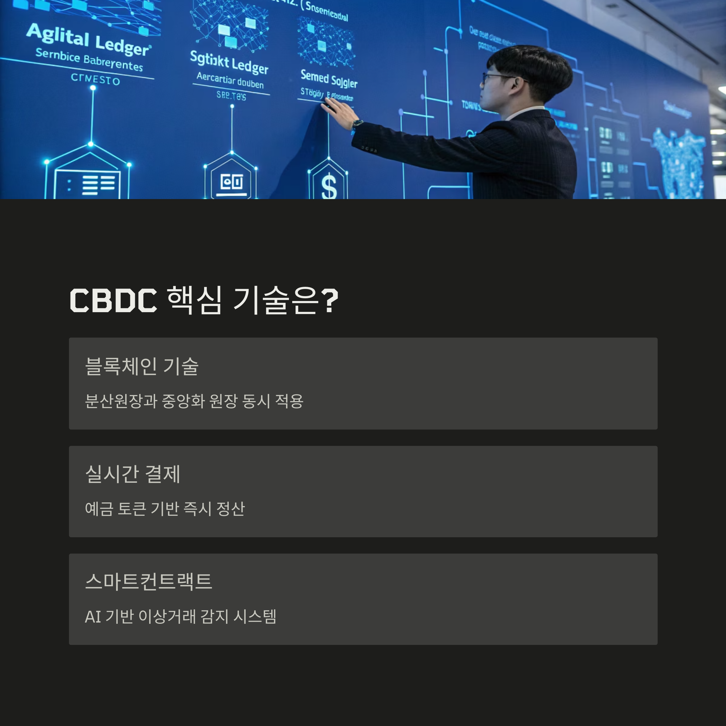CBDC는 중앙은행 디지털화폐(Central Bank Digital Currency)로, 중앙은행이 발행하는 디지털 법정 화폐입니다. 블록체인 또는 중앙화된 원장 기술을 기반으로 하며, 지급 시스템, 송금, 사회보장금 자동화 등 다양한 디지털 금융 인프라의 핵심이 됩니다.