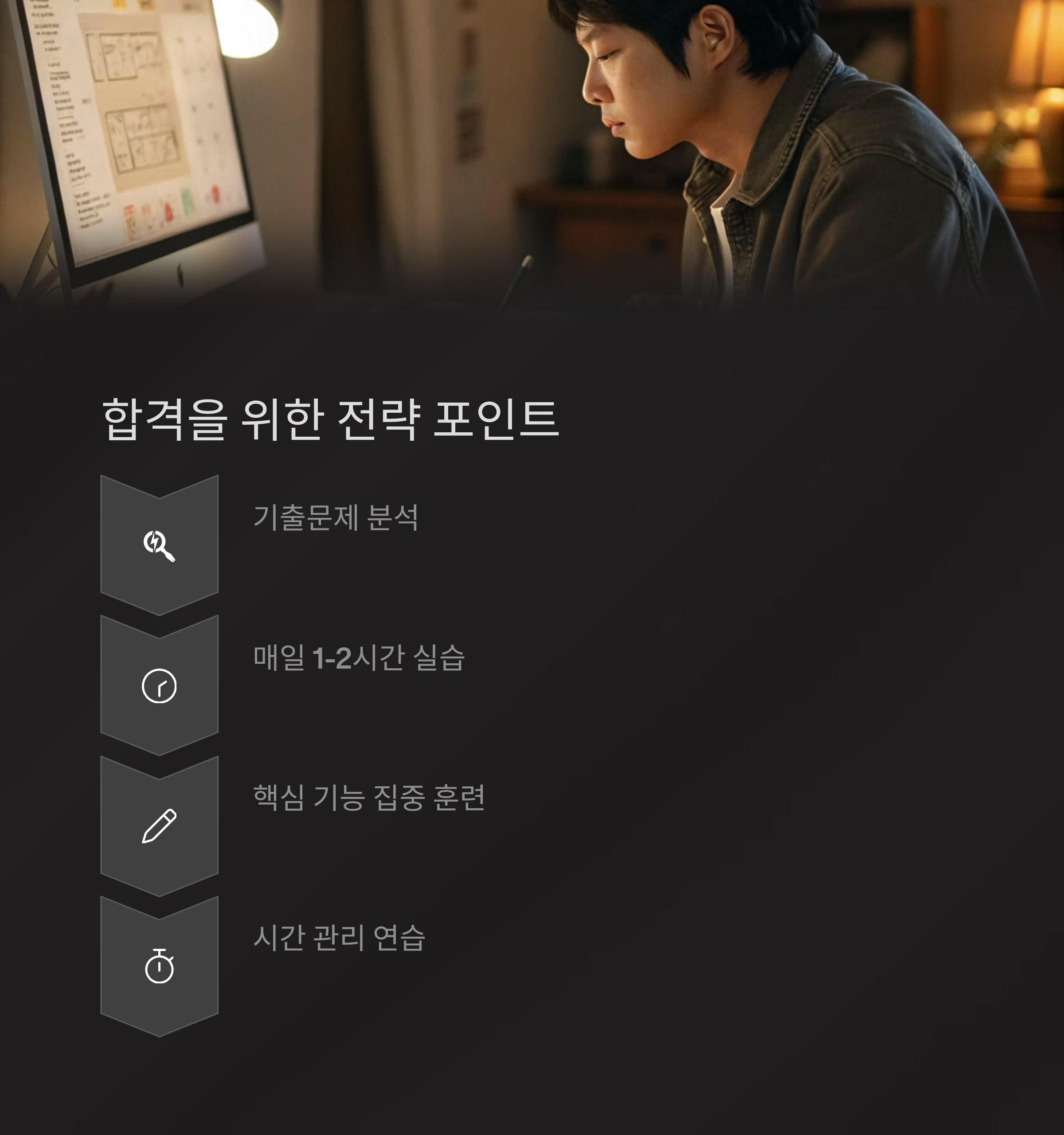 | 1주 전 | 실전 타이머 연습, 작업 완성도 향상 |