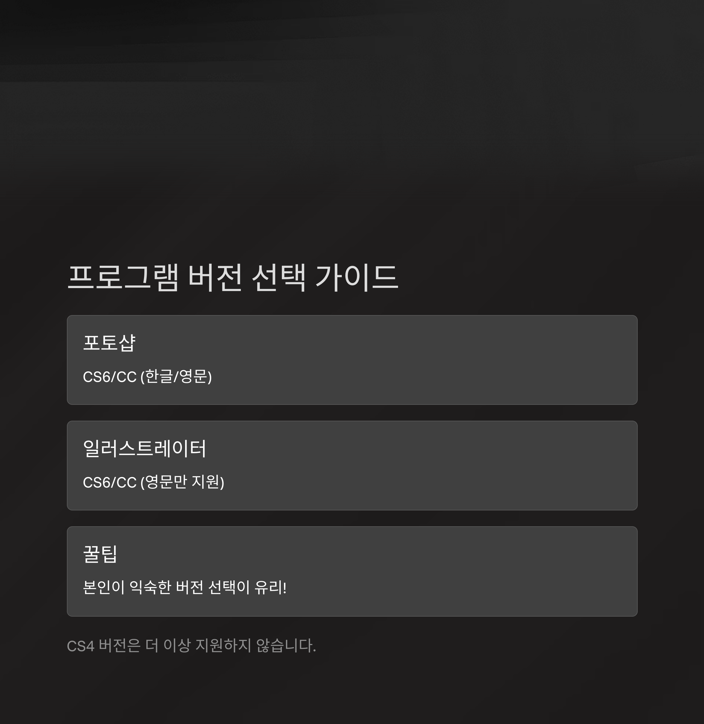 시험 전 반드시 해당 버전(예: CC, CS6)에 익숙해져야 실제 시험에서 당황하지 않습니다.