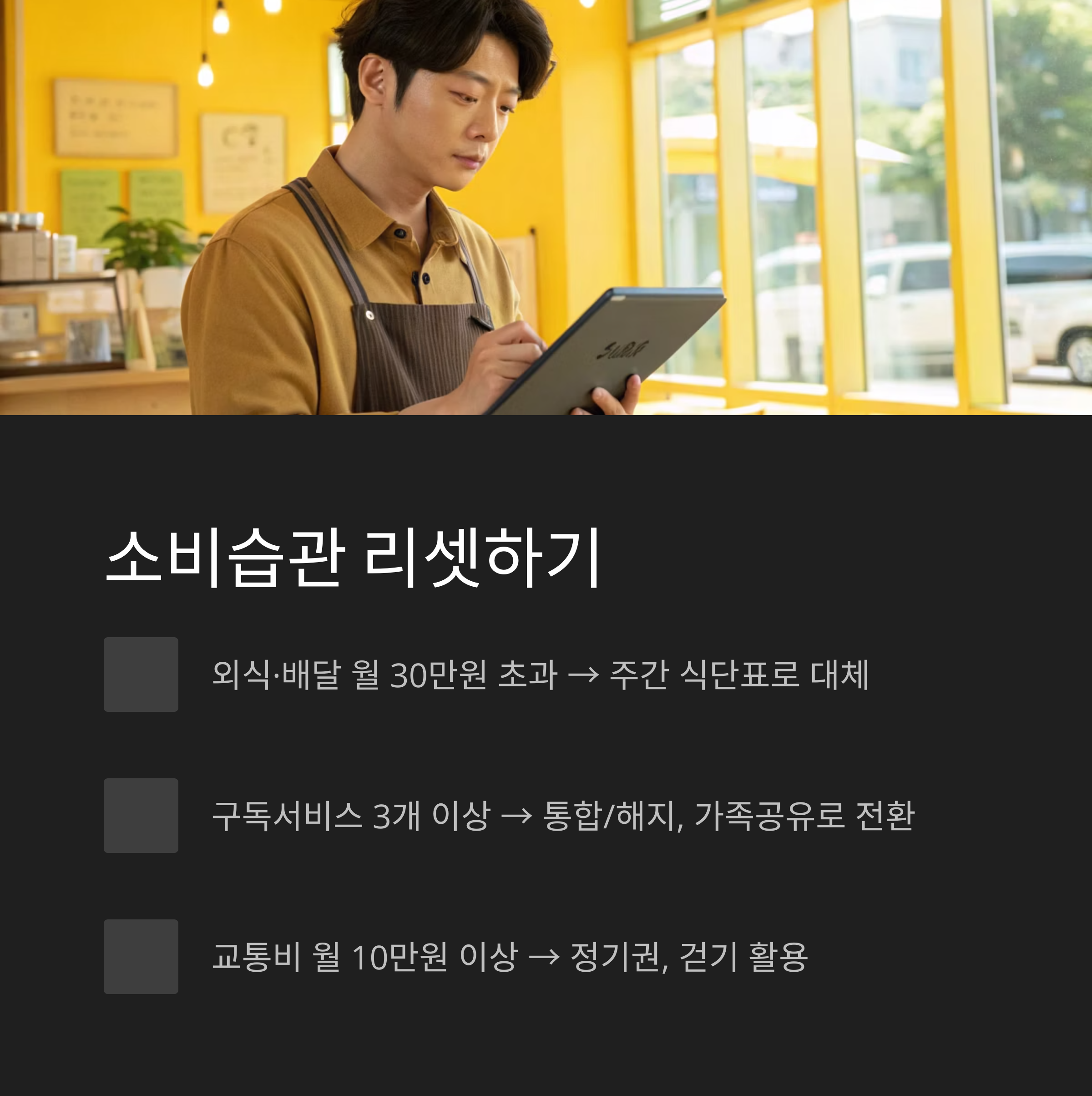 - 소비습관 리셋: 새는 돈부터 틀어막자