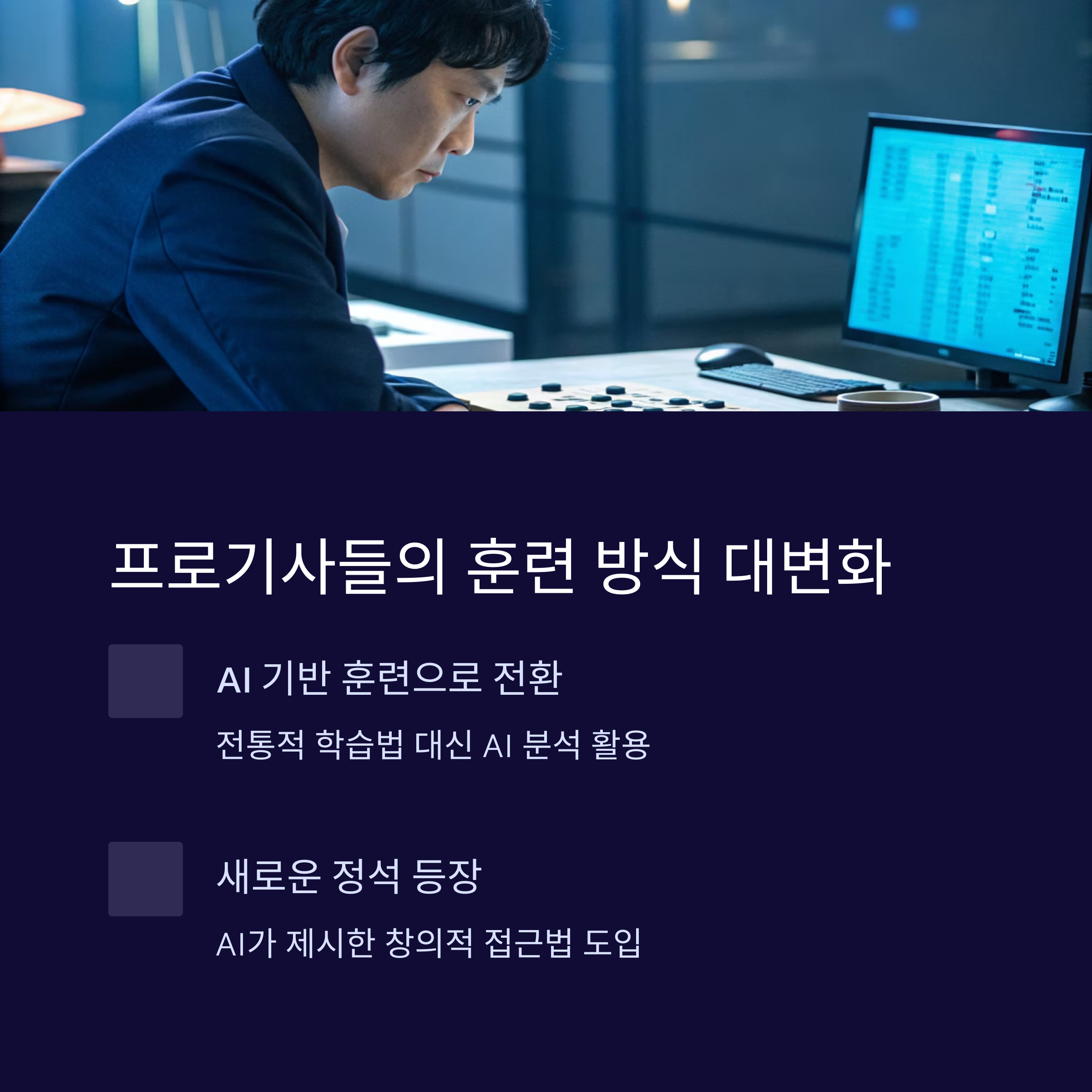 프로 기사들은 AI를 연구 파트너로 삼아 새로운 전략을 실험하고 완성시킵니다.