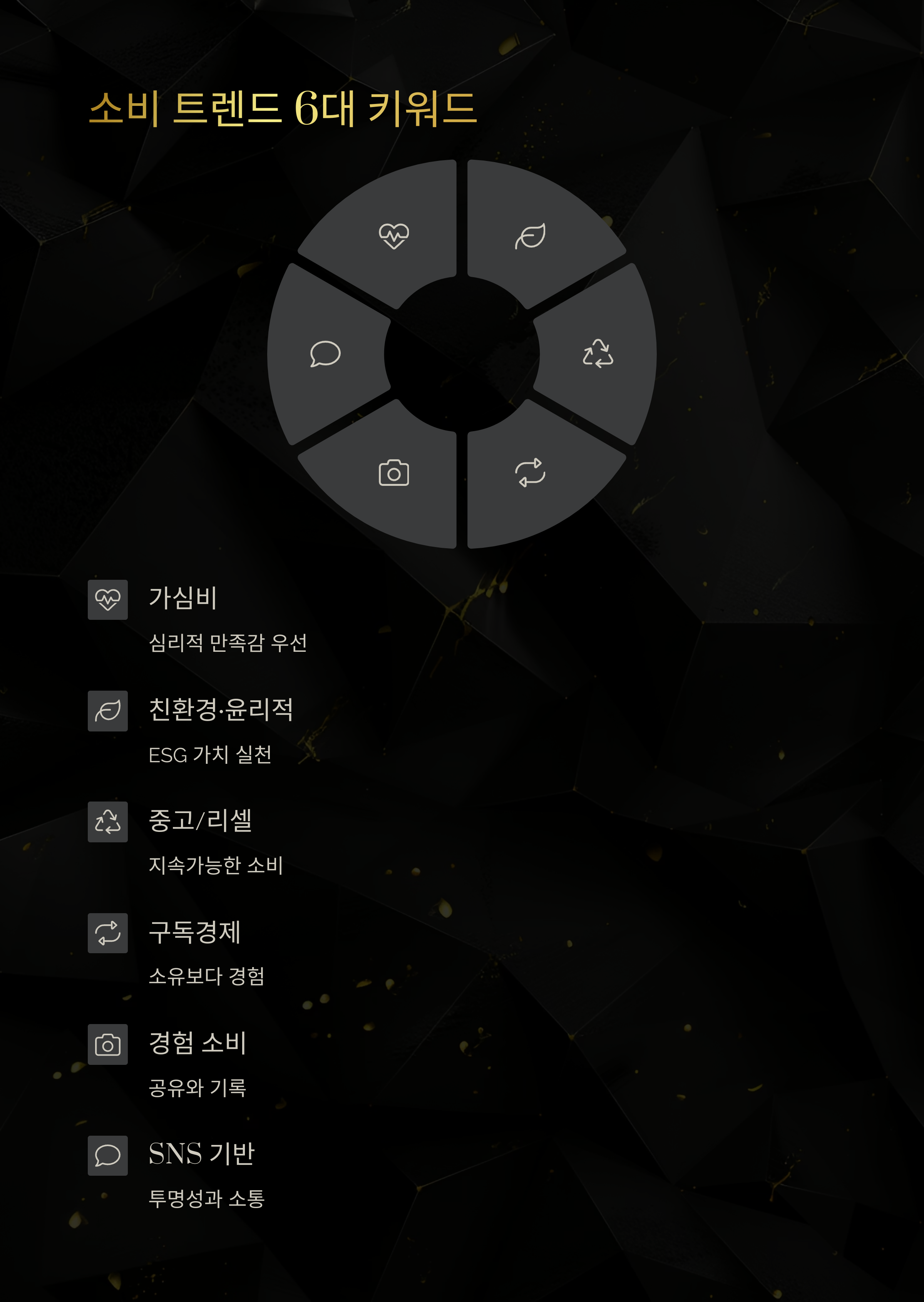 | 타깃 소비 | 개인화된 소비설계 | 구독 서비스, 맞춤 제품 선택 |