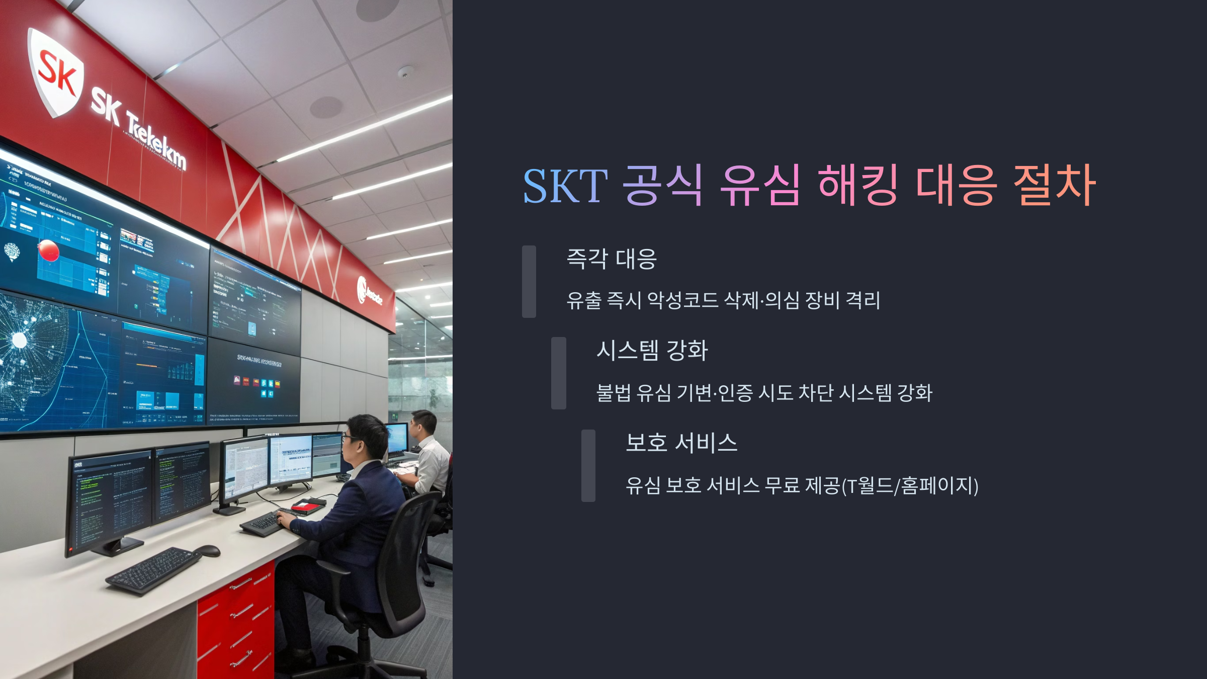 이 사건은 통신사 보안 강화의 계기가 되었으며, SKT는 이후 유심 교체 절차를 대폭 강화했습니다.